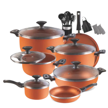 The most admired set of Pakistan Kitchens domestic nonstick pans are crafted from pure aluminum. We offered a perfect combination of quality looks for you to indulge in the art of cooking the traditional way. This pan is made by forming a sheet of metal into the desired shape. Thus the metal has continuity and can be thinner and lighter while still retaining its strength every kitchen has cooking utensils for cooking on a daily basis. Most of them were damaged, dent over it because of regular use you must be facing the loss of money because your cookware sets are expensive and you have paid more than enough so why not your kitchen has a new range of cookware sets in your low budget. The domestic nonstick jumbo gift set 21 Pieces can come in handy for all types of dishes and recipes you make.