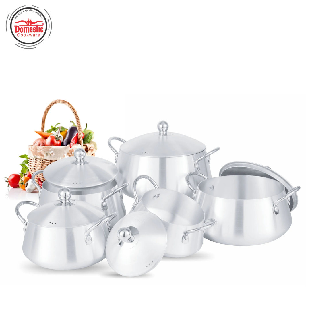 Domestic Cookware brings together families who appreciate ‘design’ and ‘function’ syncing together to deliver outstanding performance. The perfect stylish body of our aluminum pots and pans is manufactured from heavy gauge high-quality pure aluminum which ensures even heat distribution for better cooking and results in fantastic performance throughout the kitchen. This Set is the ultimate solution for your kitchen needs. Because Domestic Cookware is the Brand of Excellence and serving its customers for the last 53 years.